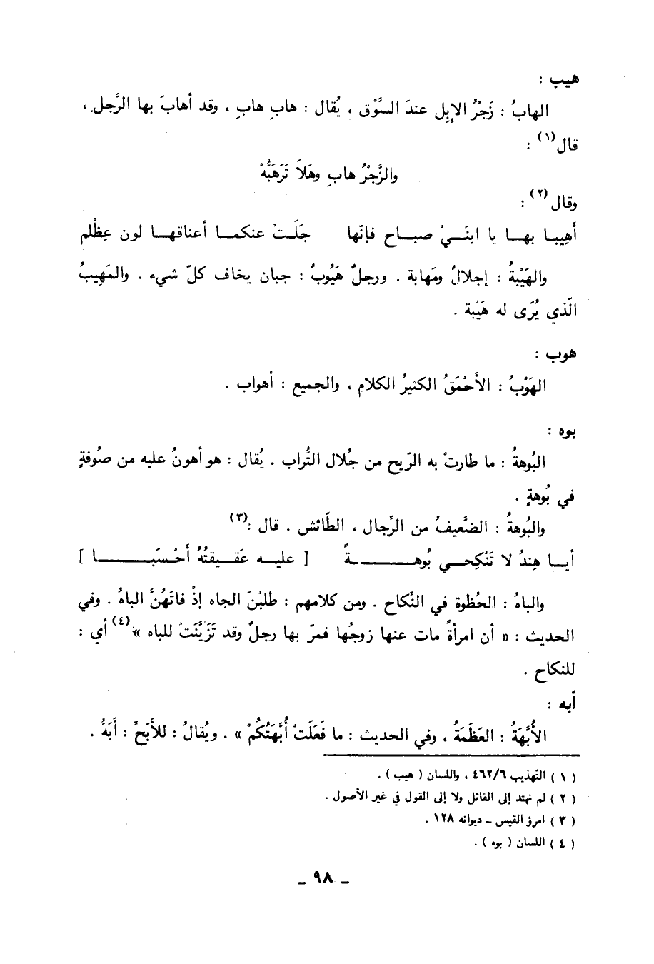 (1) التهذيب 6/ 462، واللسان (هيب) .