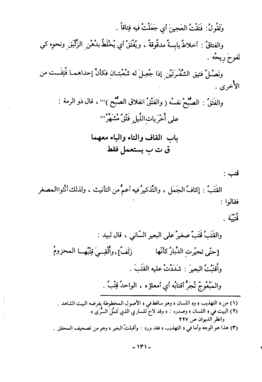 باب القاف والتاء والباء معهما ق ت ب يستعمل فقط