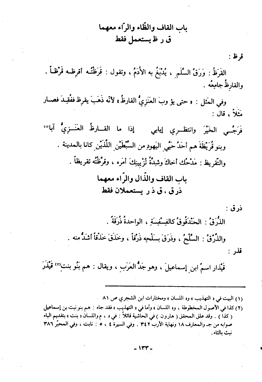 باب القاف والذال والراء معهما ذ ر ق، ق ذ ر يستعملان فقط