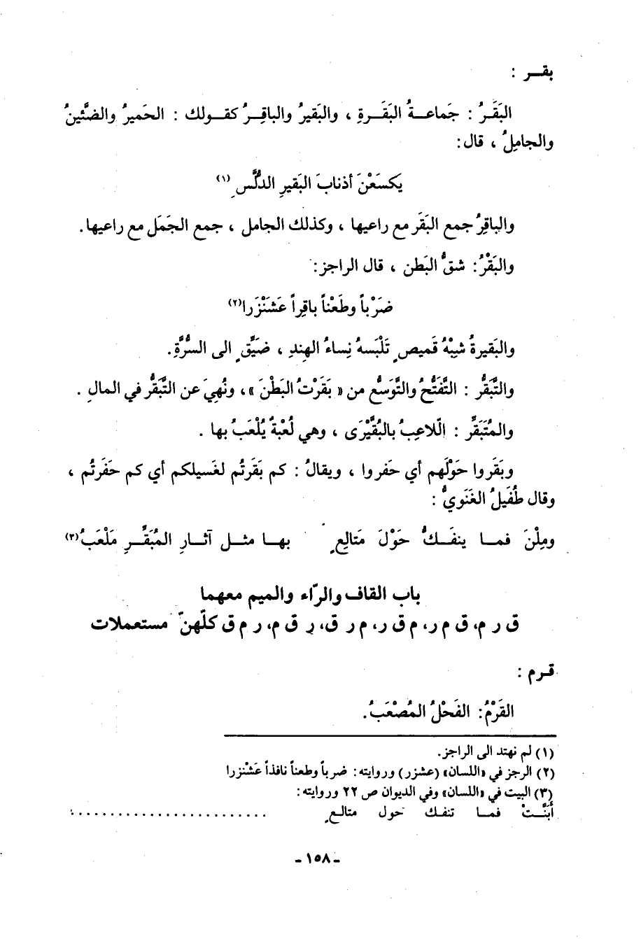 باب القاف والراء والميم معهما ق ر م، ق م ر، م ق ر، م ر ق، ر ق م، ر م ق كلهن مستعملات
