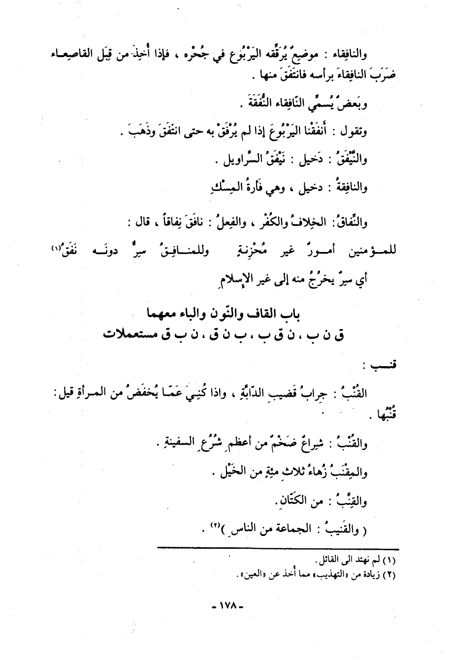 باب القاف والنون والباء معهما ق ن ب، ن ق ب، ب ن ق، ن ب ق مستعملات