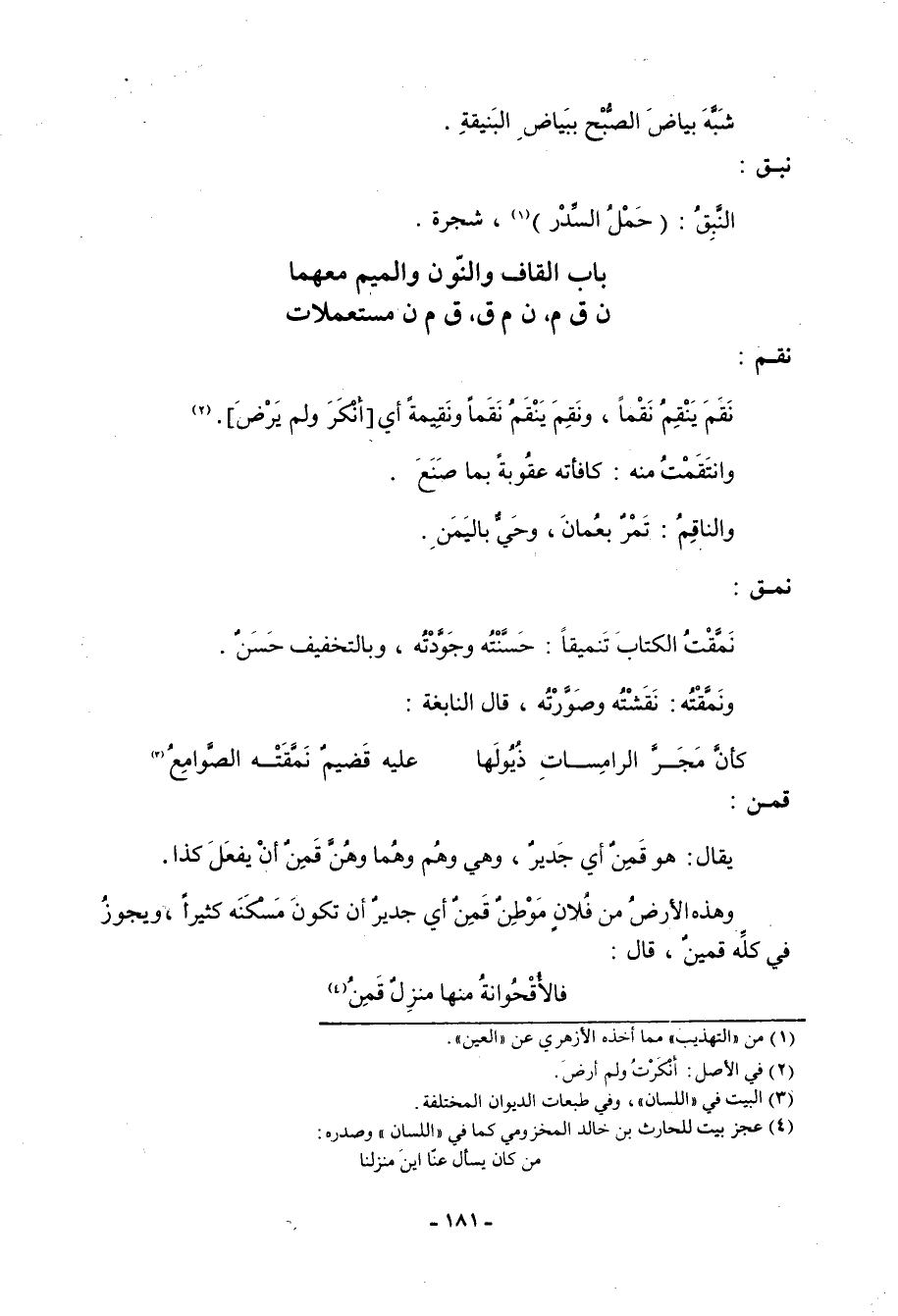 باب القاف والنون والميم معهما ن ق م، ن م ق، ق م ن مستعملات