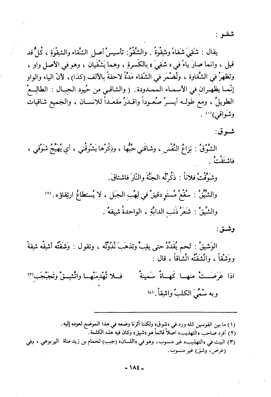 (2) أفرد صاحب التهذيب أصلا قائما هو شيق وكان فيه هذه الكلمة.