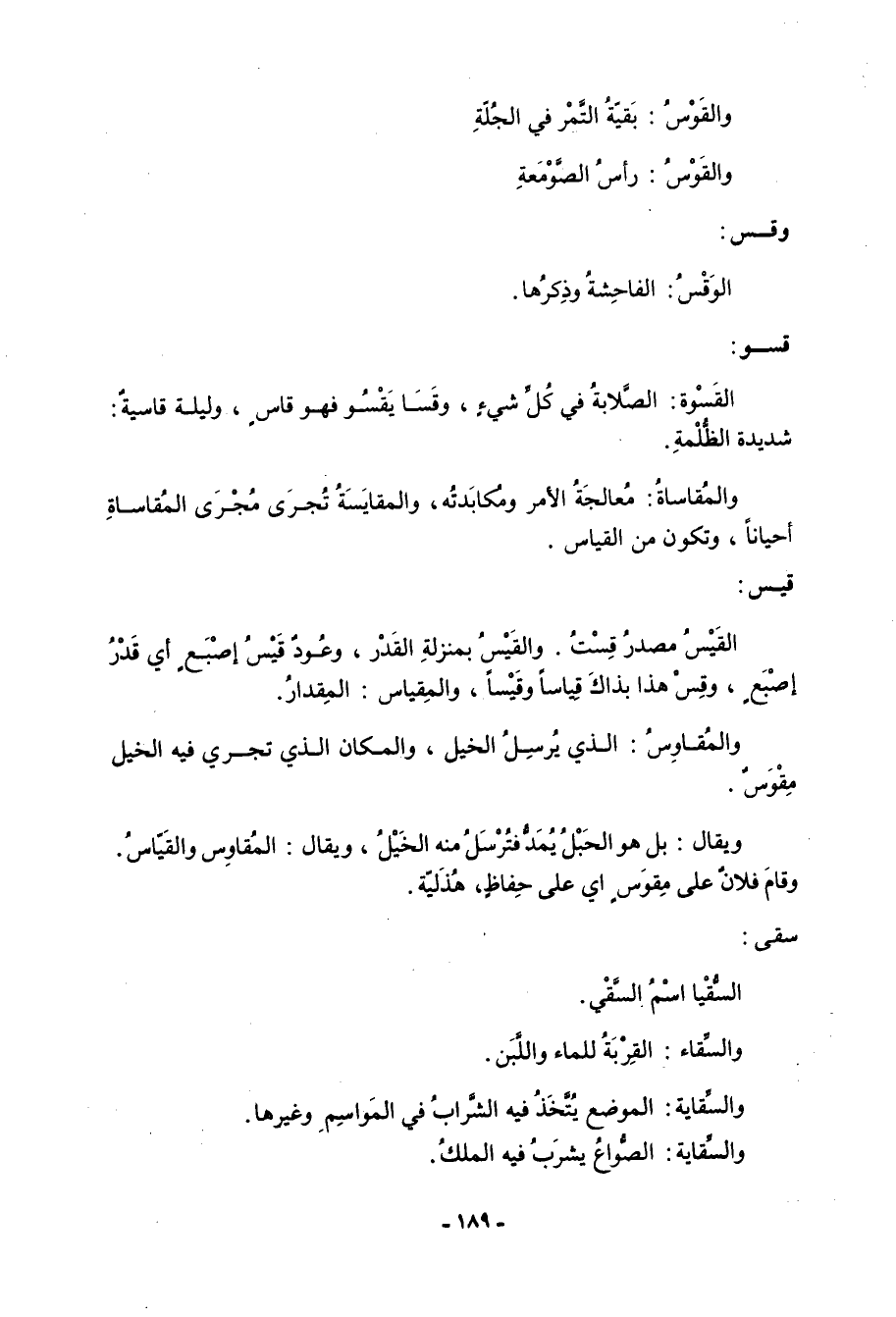 سقى: السُّقيا اسم السًّقي. والسِّقاء: القربة للماء واللبن. والسِّقاية: الموضع يتخذ فيه الشراب في المواسم وغيرها. والسِّقاية: الصواع يشرب فيه الملك.