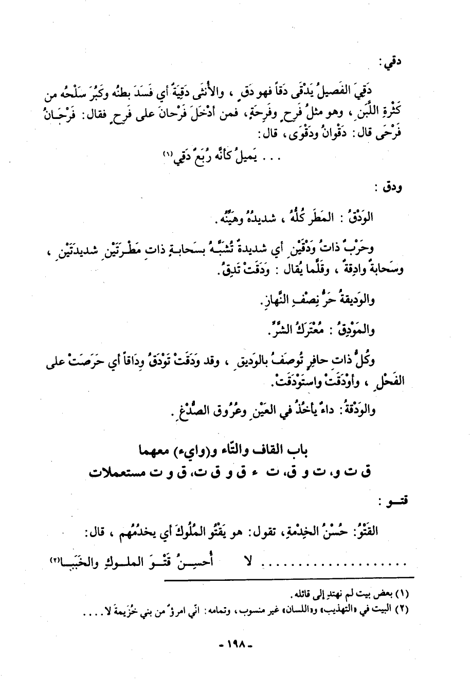 باب القاف والتاء و (وا يء) معهما ق ت و، ت وق، تء ق، وق ت، ق وت مستعملات