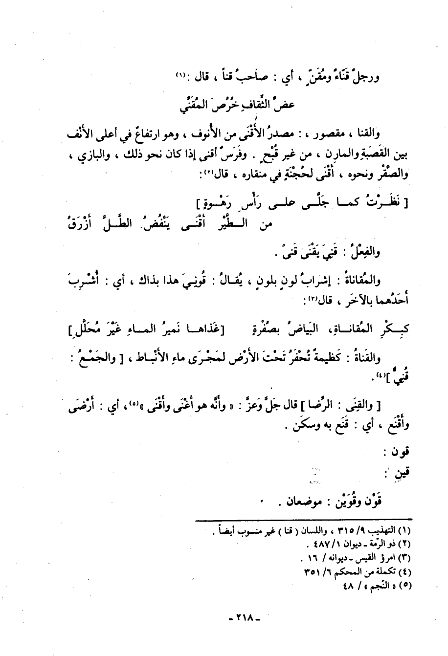 (1) التهذيب 9/ 315، واللسان (قنا) غير منسوب أيضا.