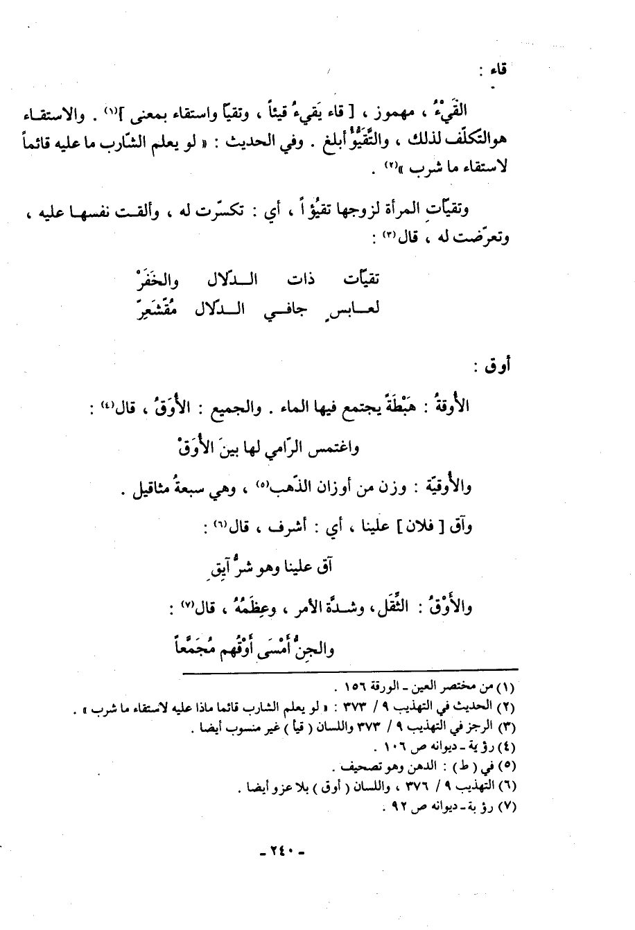 (6) التهذيب 9/ 376، واللسان (أوق) بلا عزو أيضا.