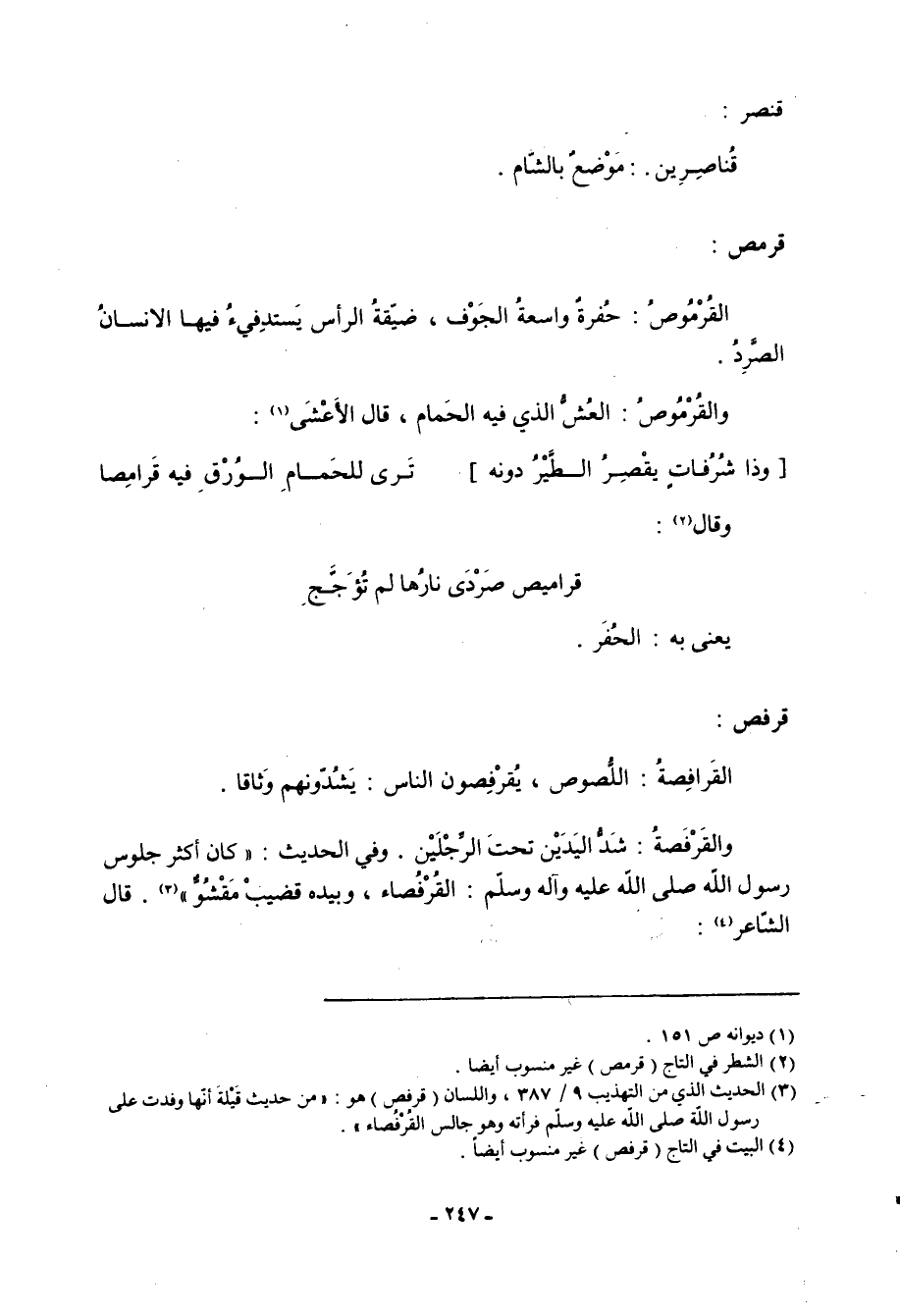 (3) الحديث الذي من التهذيب 9/ 387، واللسان (قرفص) هو: