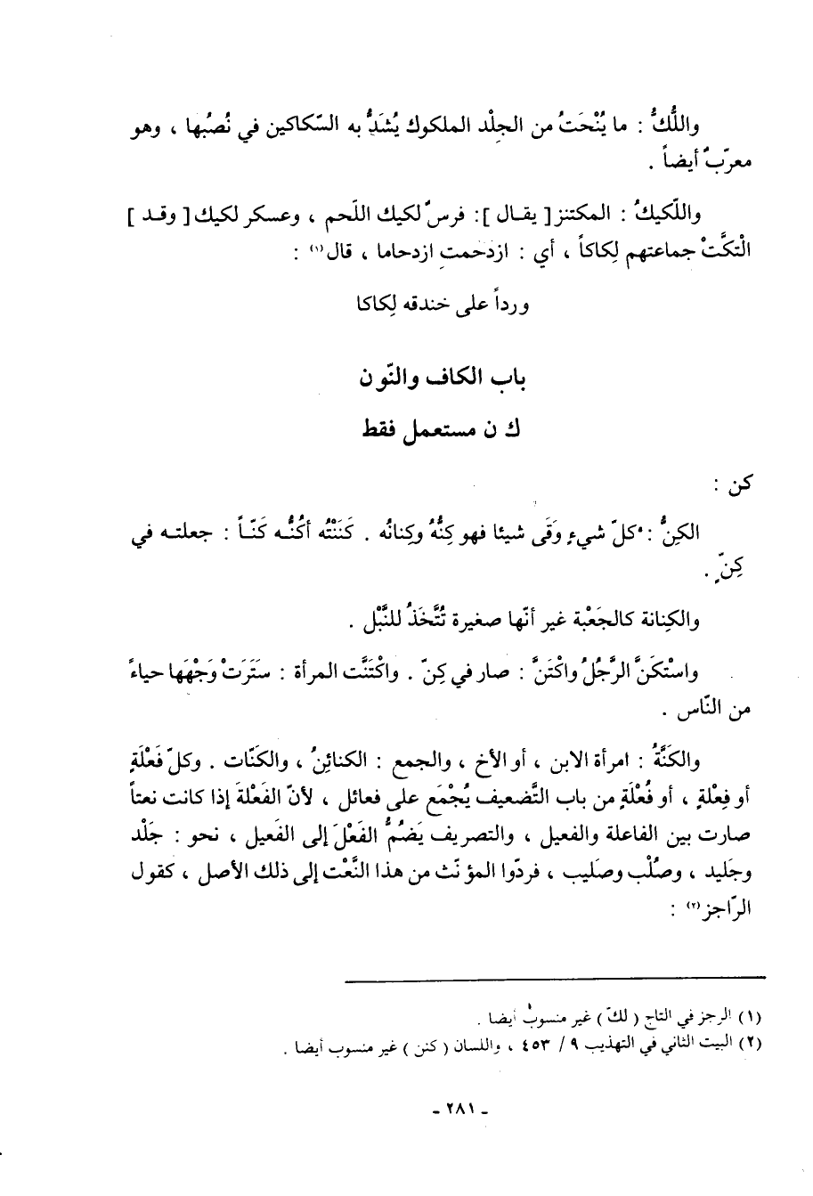باب الكاف والنون ك ن مستعمل فقط