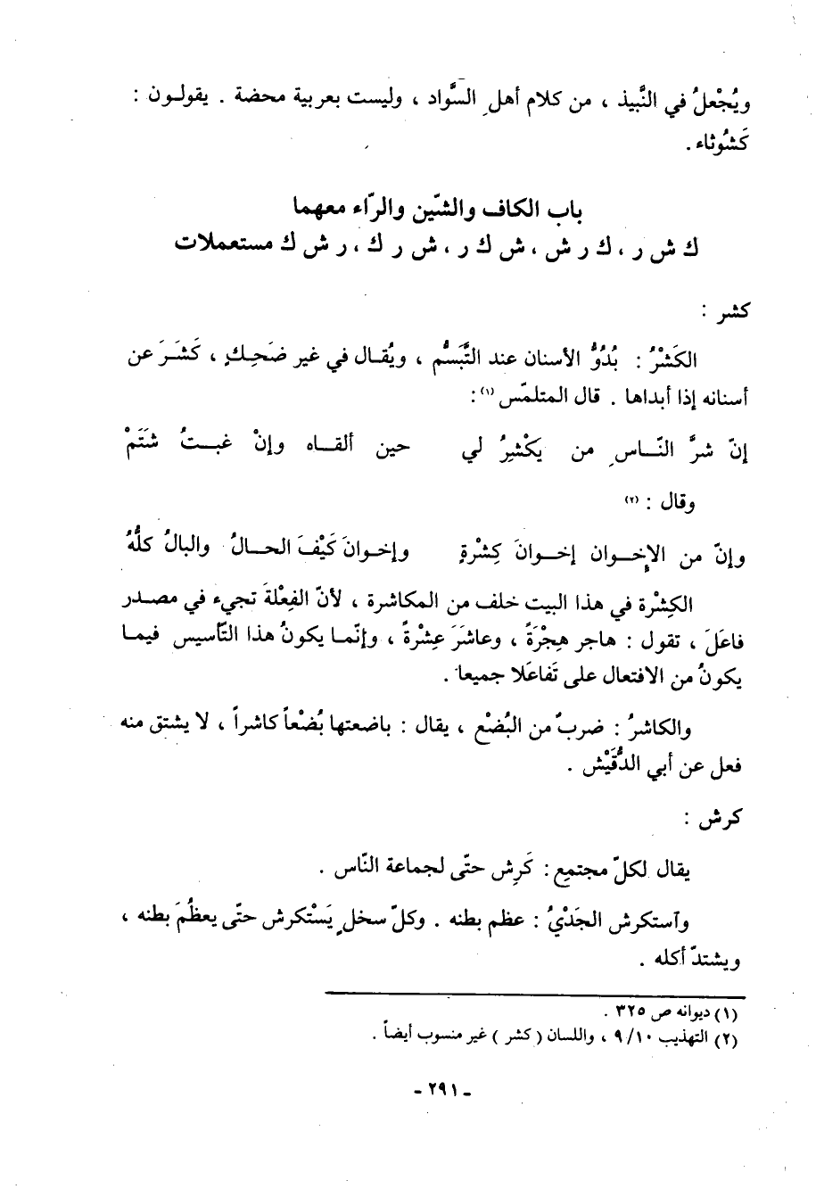 (2) التهذيب 10/ 9، واللسان (كشر) غير منسوب أيضا.