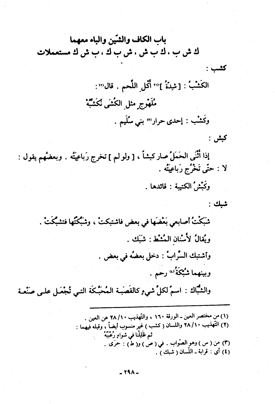باب الكاف والشين والباء معهما ك ش ب، ك ب ش، ش ب ك، ب ش ك مستعملات