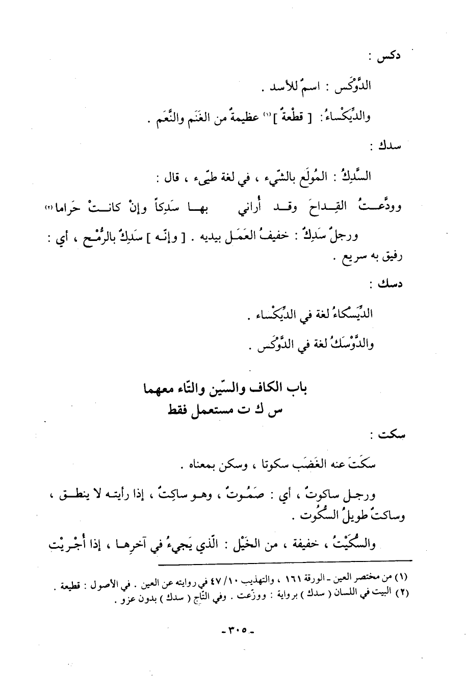 باب الكاف والسين والتاء معهما س ك ت مستعمل فقط