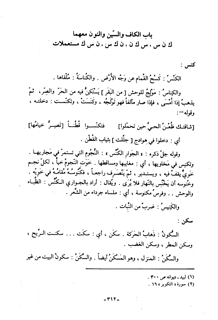 باب الكاف والسين والنون معهما ك ن س، س ك ن، ن ك س، ن س ك مستعملات