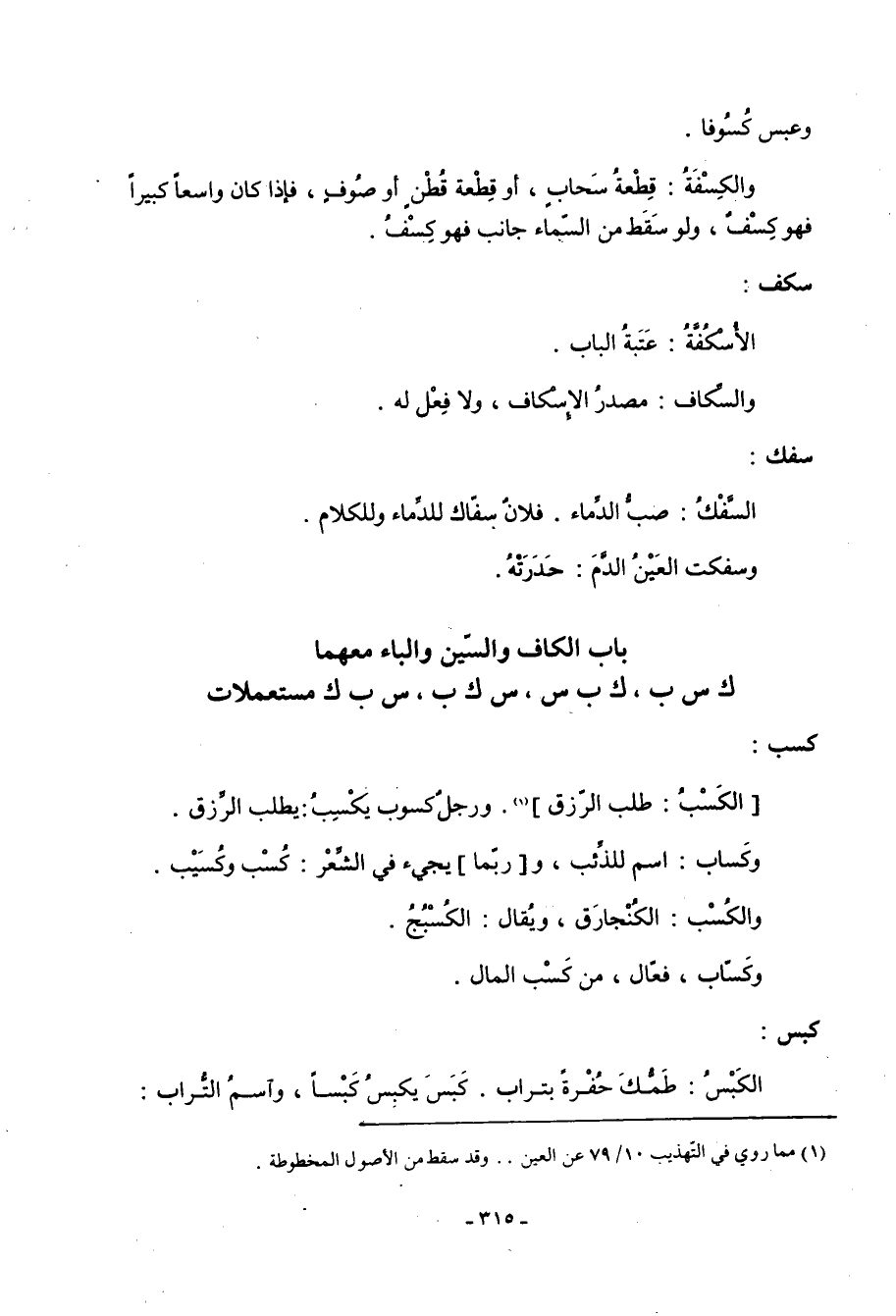 باب الكاف والسين والباء معهما ك س ب، ك ب س، س ك ب، س ب ك مستعملات