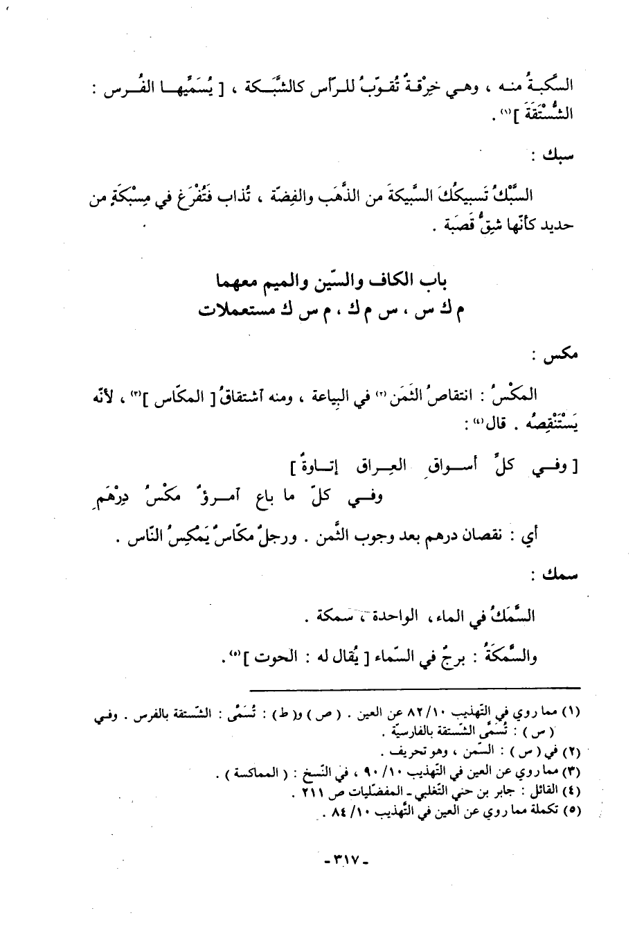 (3) مما روي عن العين في التهذيب 10/ 90، في النسخ: (المماكسة) .