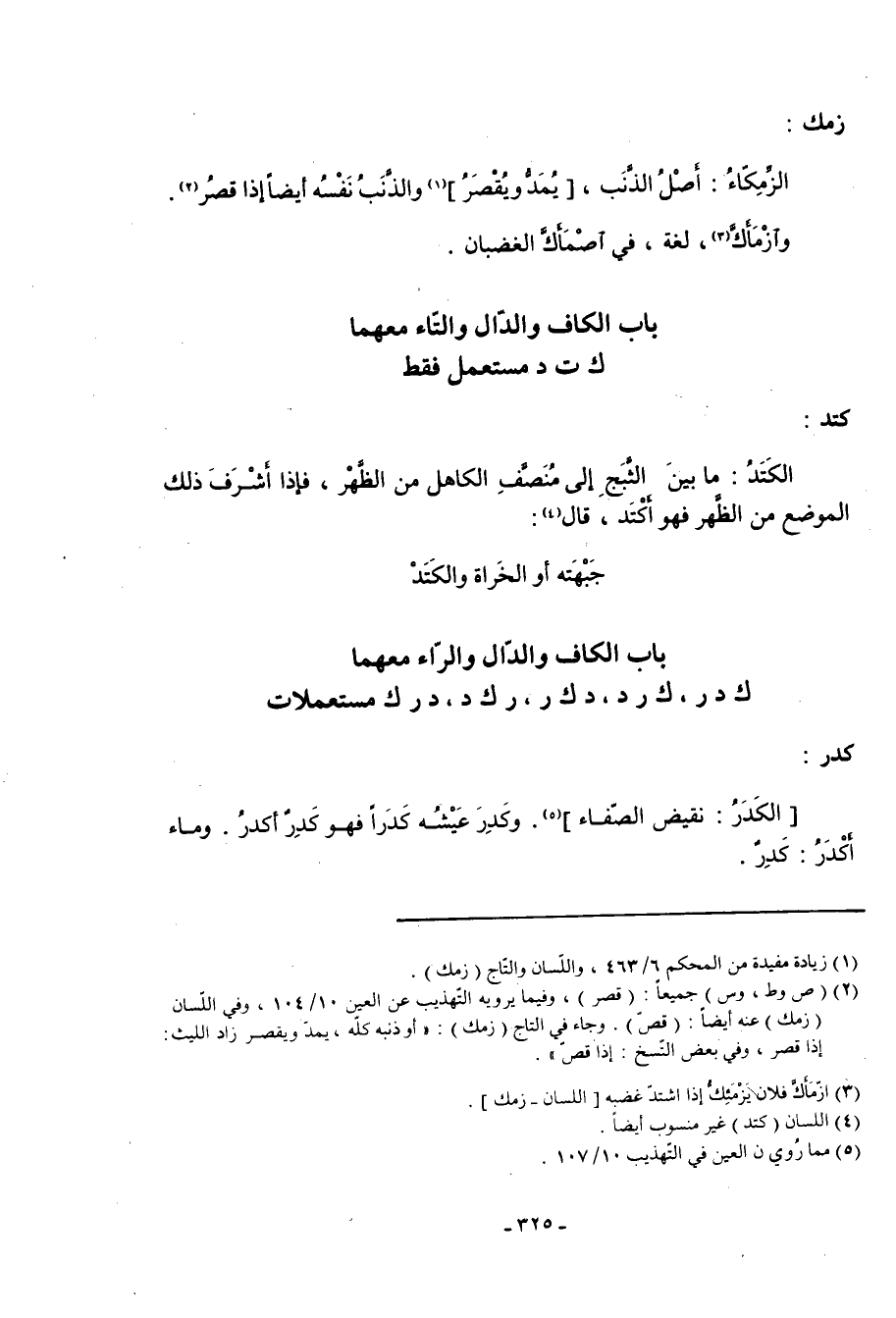 باب الكاف والدال والراء معهما ك د ر، ك ر د، د ك ر، ر ك د، د ر ك مستعملات