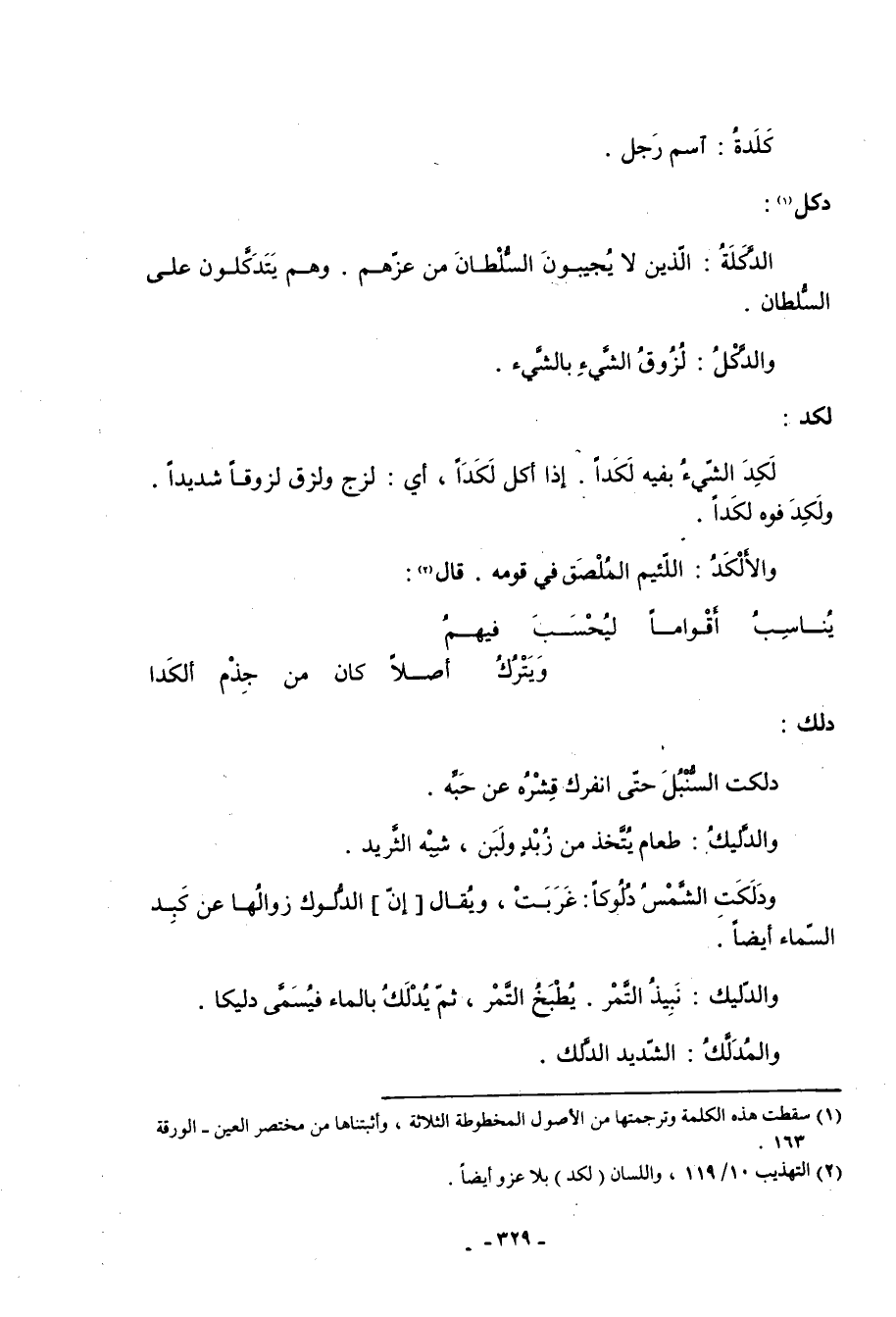 (2) التهذيب 10/ 119، واللسان (لكد) بلا عزو أيضا.