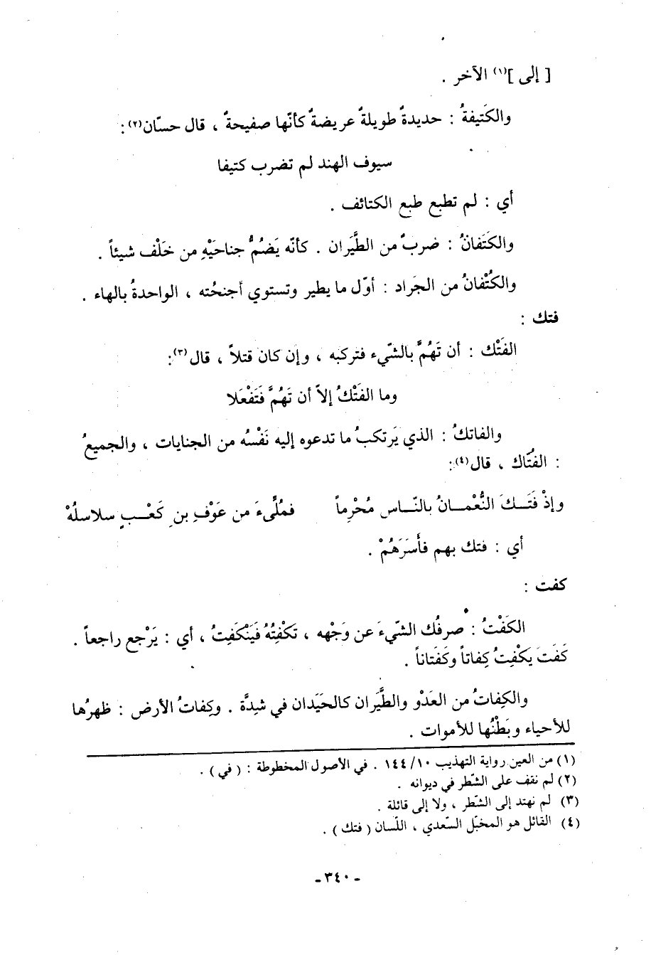 (1) من العين رواية التهذيب 10/ 144. في الأصول المخطوطة: (في) .