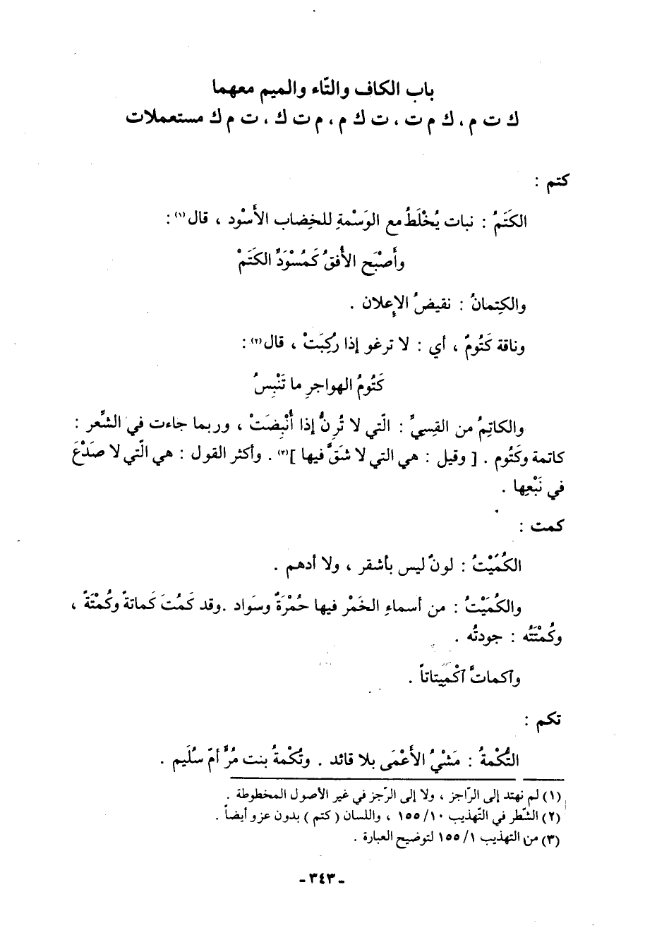 باب الكاف والتاء والميم معهما ك ت م، ك م ت، ت ك م، م ت ك، ت م ك مستعملات