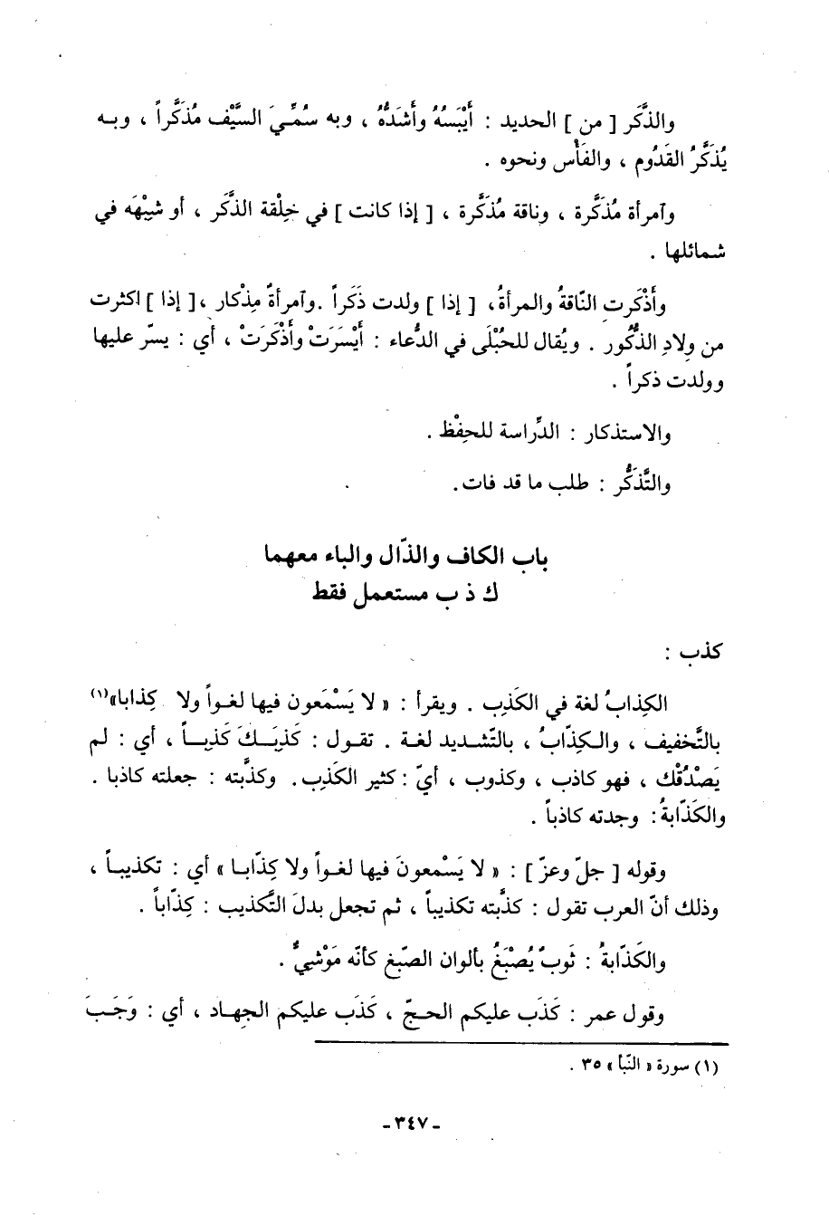 باب الكاف والذال والباء معهما ك ذ ب مستعمل فقط