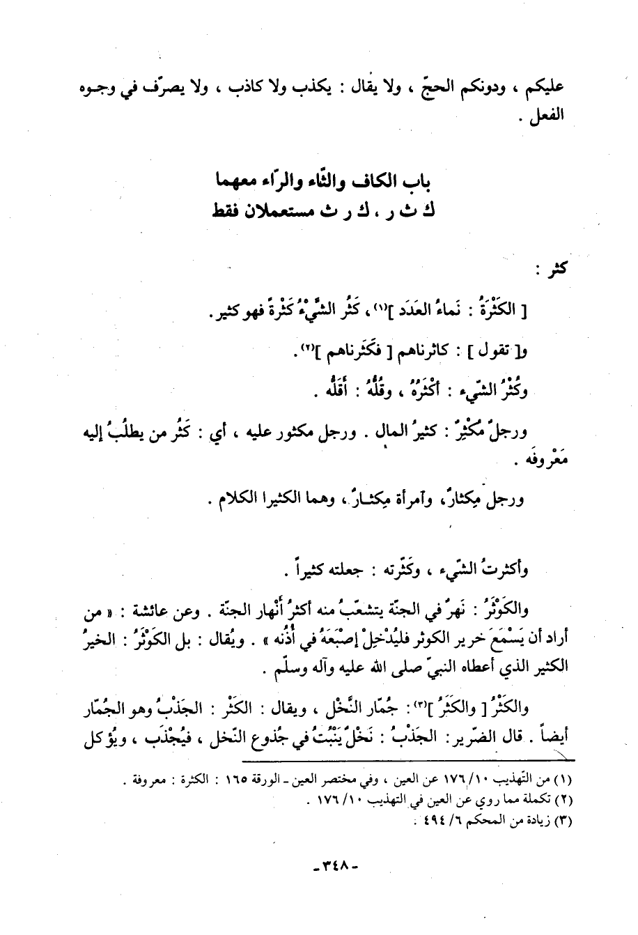 (1) من التهذيب 10/ 176 عن العين، وفي مختصر العين- الورقة 165: الكثرة: معروفة.