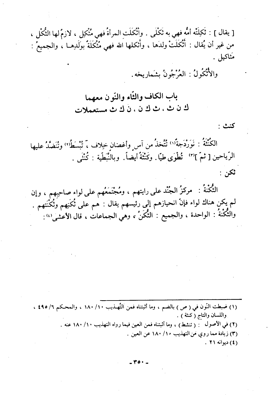 باب الكاف والثاء والنون معهما ك ن ث، ث ك ن، ن ك ث مستعملات