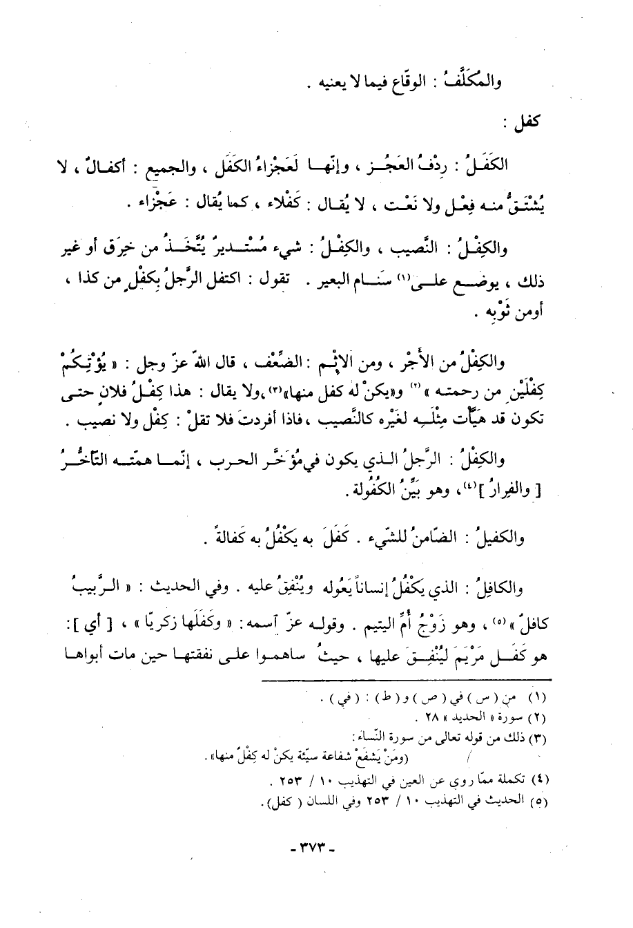 (5) الحديث في التهذيب 10/ 253 وفي اللسان (كفل) .