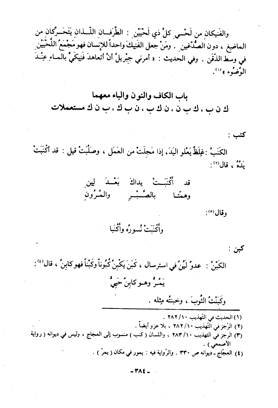 باب الكاف والنون والباء معهما ك ن ب، ك ب ن، ن ك ب، ن ب ك، ب ن ك مستعملات