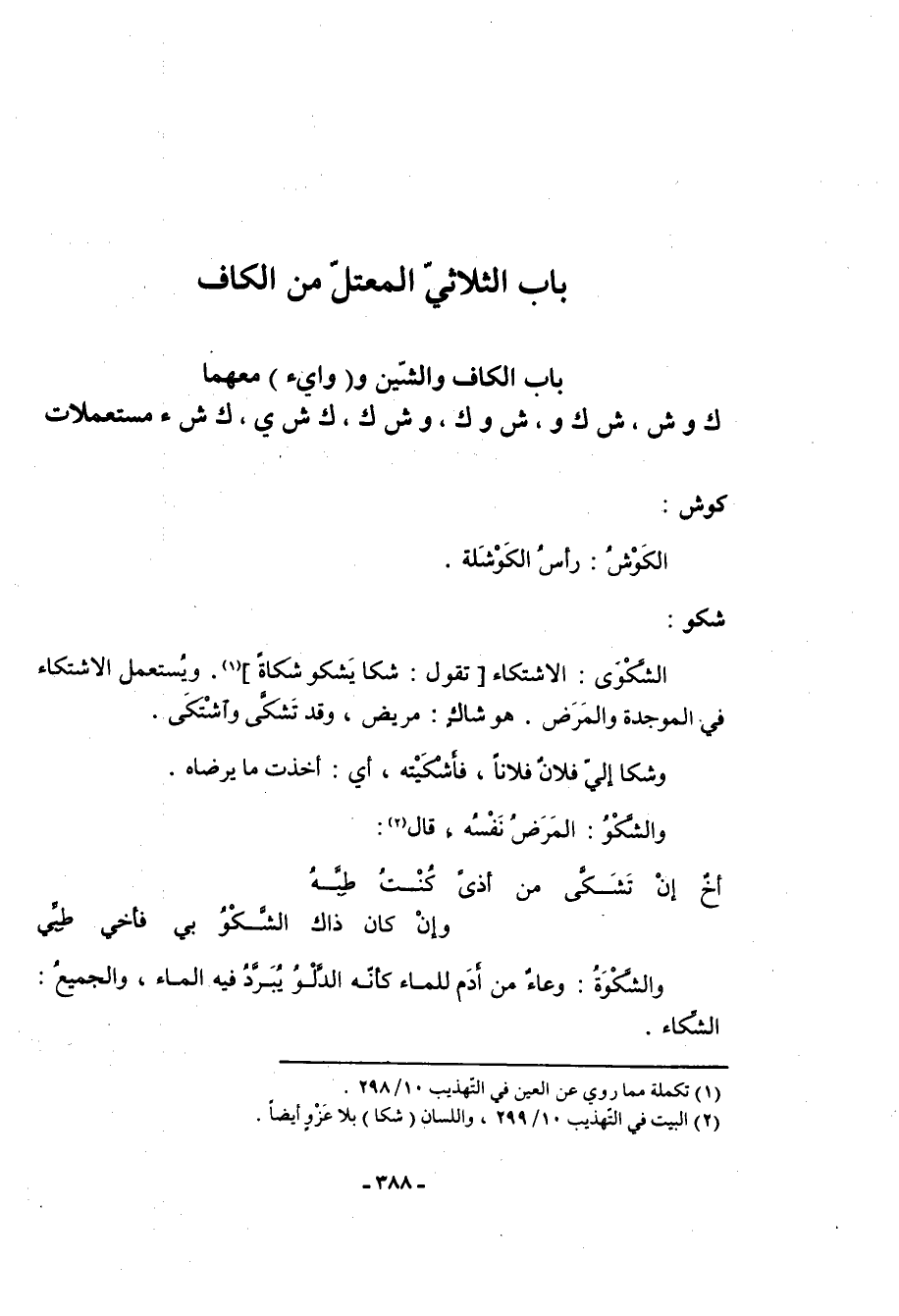 باب الكاف والشين و (وا يء) معهما ك وش، ش ك و، ش وك، وش ك، ك ش ي، ك شء مستعملات