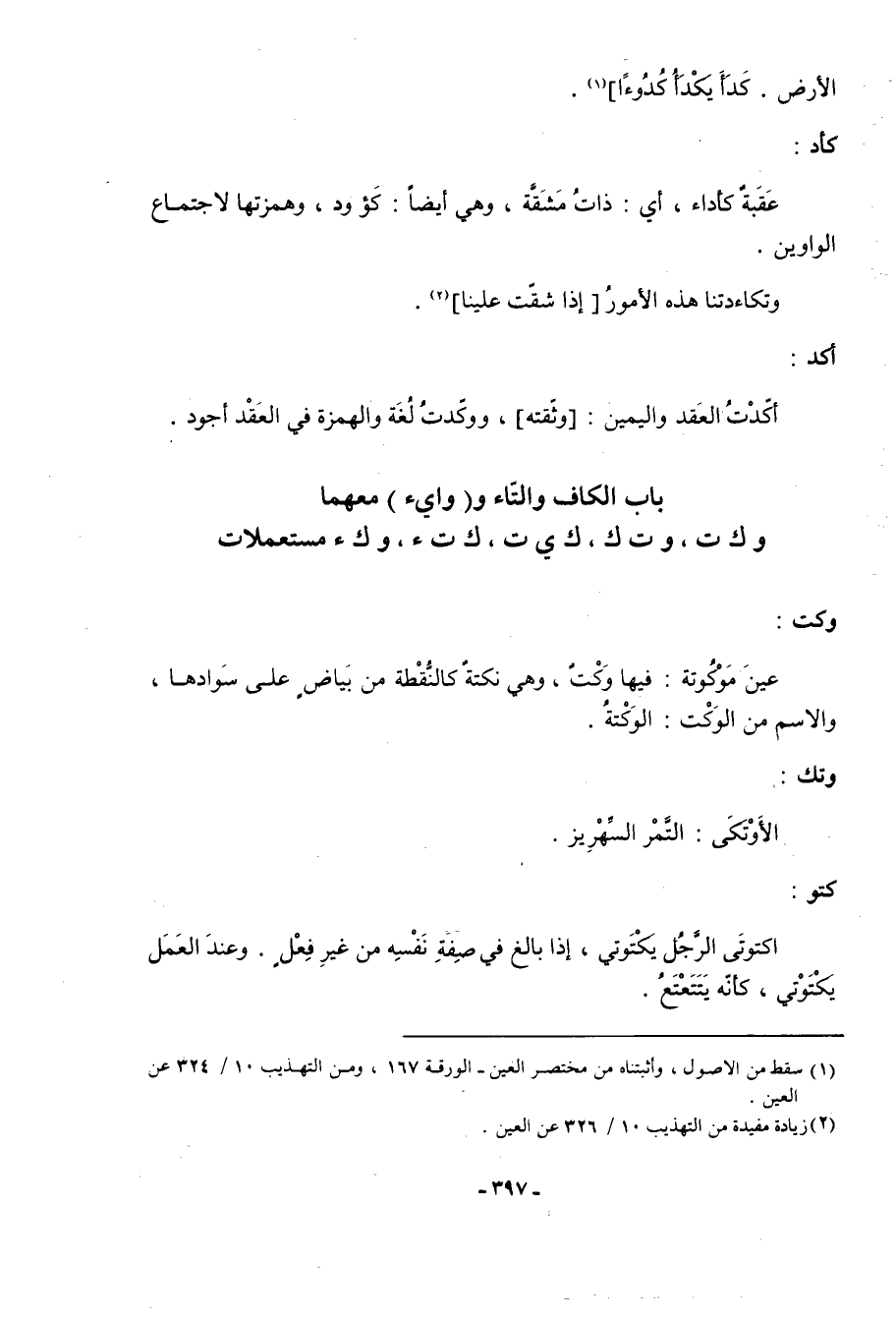 باب الكاف والتاء و (وا يء) معهما وك ت، وت ك، ك ي ت، ك تء، وكء مستعملات