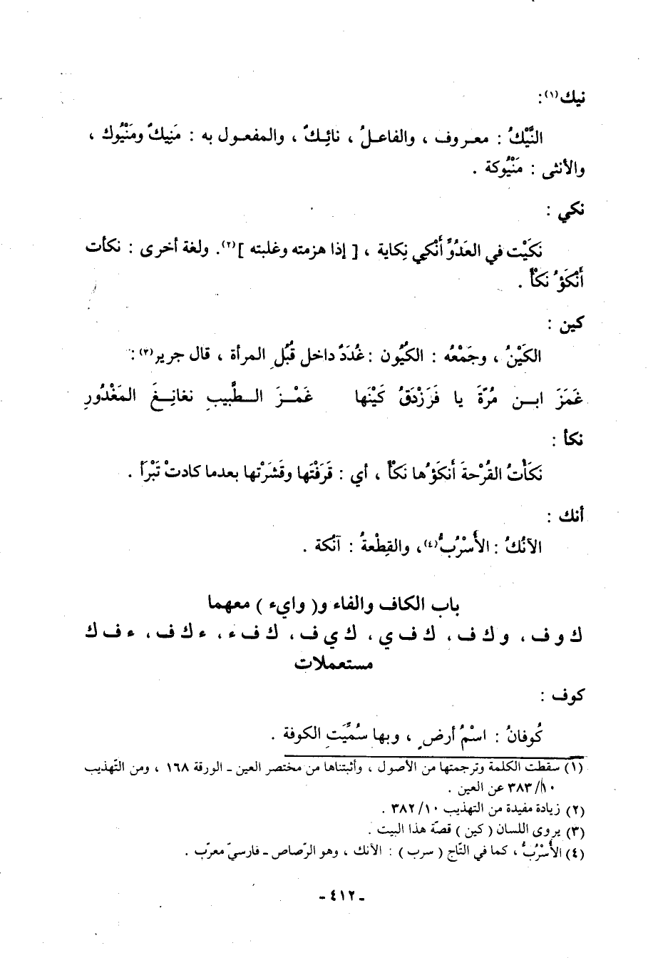 باب الكاف والفاء و (وا يء) معهما ك وف، وك ف، ك ف ي، ك ي ف، ك فء، ء ك ف، ء ف ك مستعملات