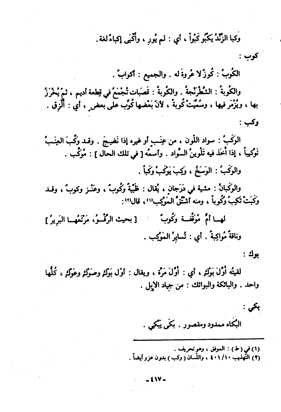 (2) التهذيب 10/ 401، واللسان (وكب) بدون عزو أيضا.