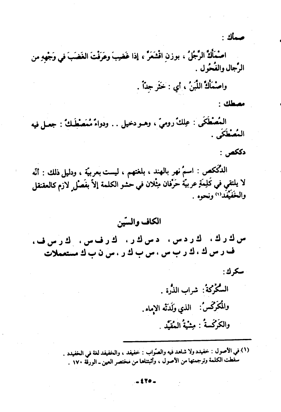 (1) في الأصول: خفيدد ولا شاهد فيه والصواب: خفيفد، والخفيفد لغة في الخفيدد. سقطت الكلمة وترجمتها من الأصول، وأثبتناها من مختصر العين- الورقة 170.