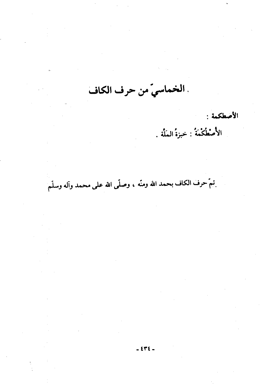 تم حرف الكاف بحمد الله ومنه، وصلى الله على محمد وآله وسلم.