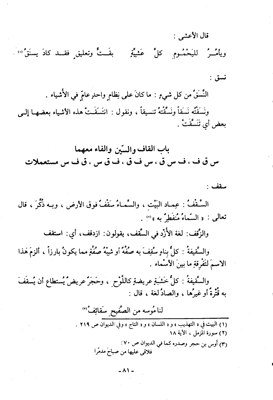 باب القاف والسين والفاء معهما س ق ف، ف س ق، س ف ق، ف ق س، ق ف س مستعملات