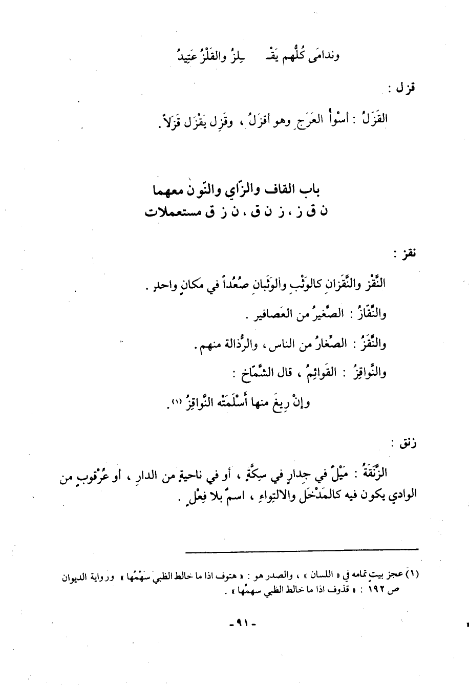 باب القاف والزاي والنون معهما ن ق ز، ز ن ق، ن ز ق مستعملات