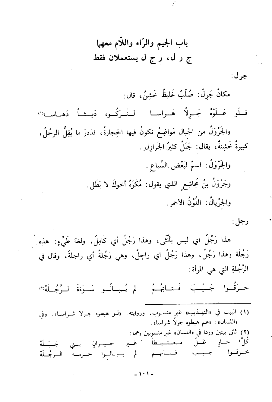 باب الجيم والراء واللاّم معهما ج ر ل، ر ج ل يستعملان فقط
