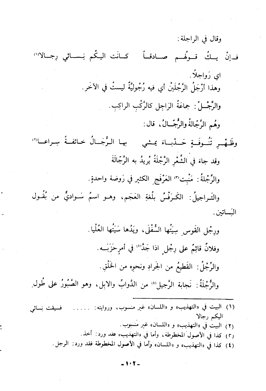 (4) كذا في التهذيب واللسان وأما في الأصول المخطوطة فقد ورد: الرجل.