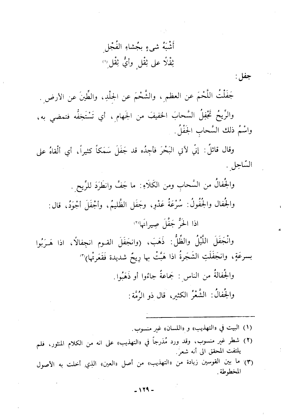 (3) ما بين القوسين زيادة من التهذيب من أصل العين الذي أخلت به الأصول المخطوطة.