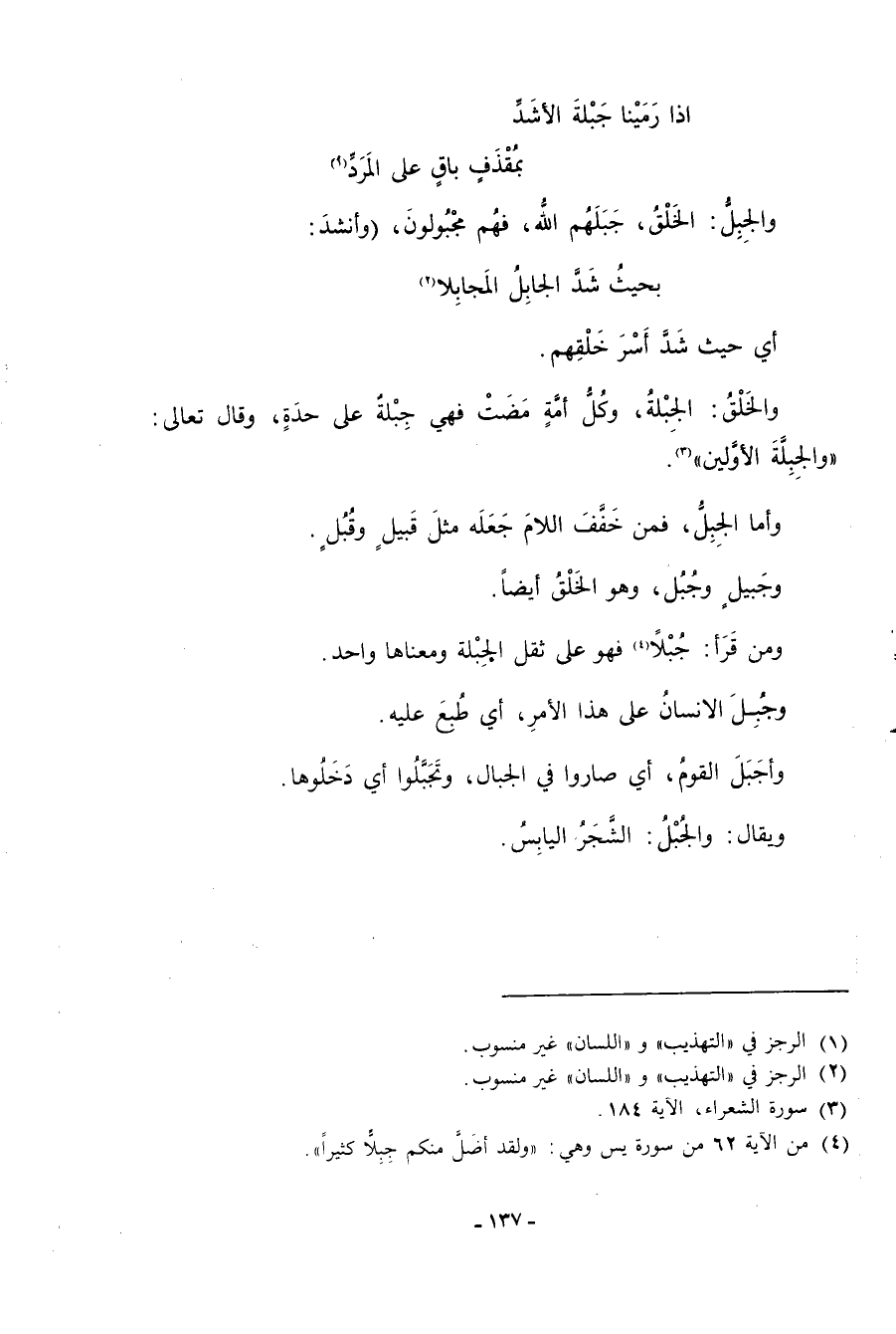 (4) من الآية 62 من سورة يس وهي: وَلَقَدْ أَضَلَّ مِنْكُمْ جِبِلًّا كَثِيراً..