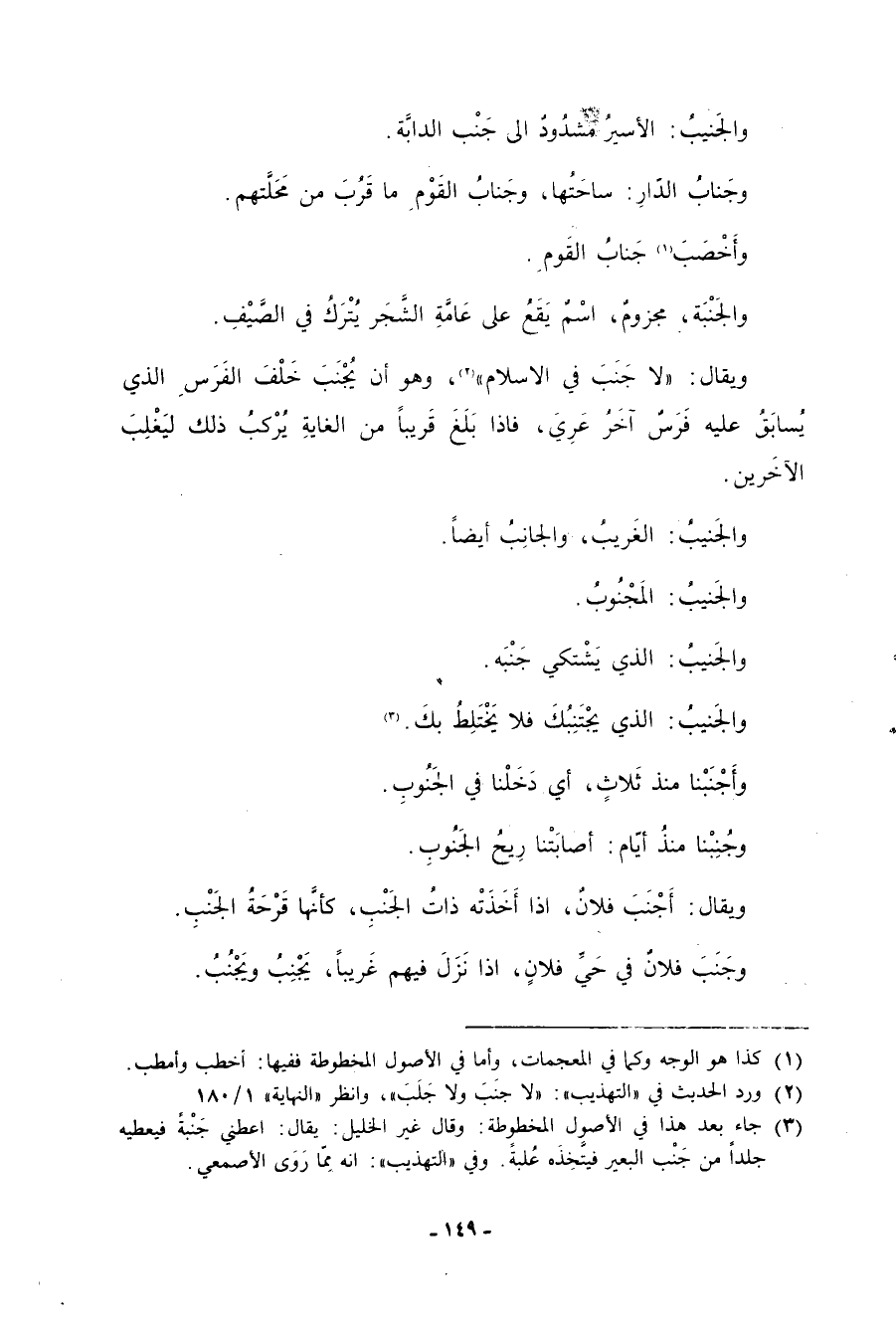 (3) جاء بعد هذا في الأصول المخطوطة: وقال غير الخليل: يقال: أعطني جنبة فيعطيه جلدا من جنب البعير فيتخذه علبة. وفي التهذيب: أنه مما روى الأصمعي.