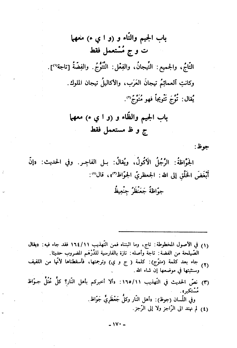 (2) جاء بعد كلمة (متوج) : كلمة (ج وي) وترجمتها، فأسقطناها لأنها من اللفيف وسنثبتها في موضعها إن شاء الله.