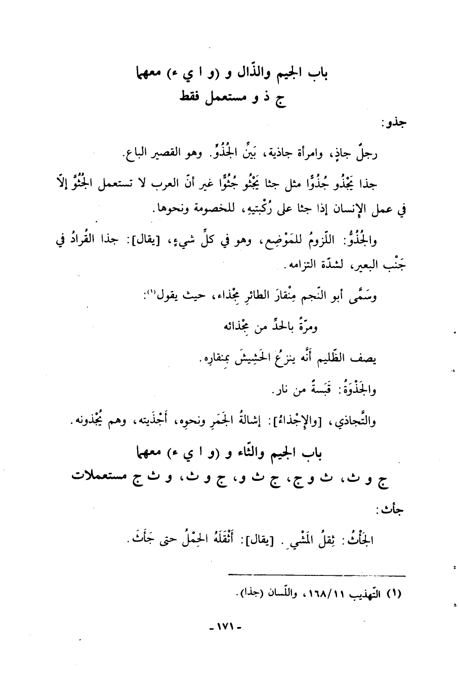 (1) التهذيب 11/ 168، واللسان (جذا) .