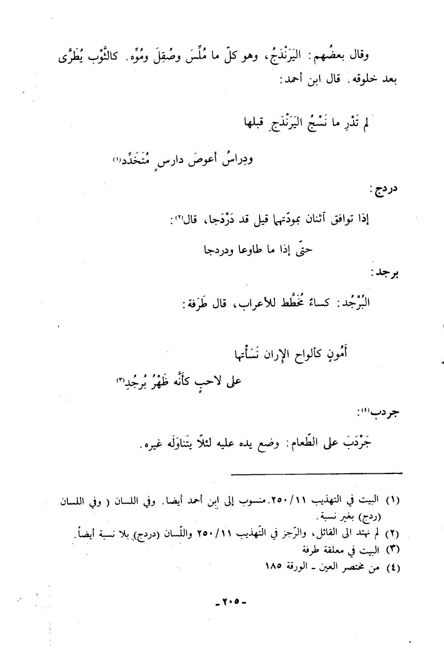 (1) البيت في التهذيب 11/ 250 منسوب إلى ابن أحمد أيضا. وفي اللسان (وفي اللسان (ردج) بغير نسبة.