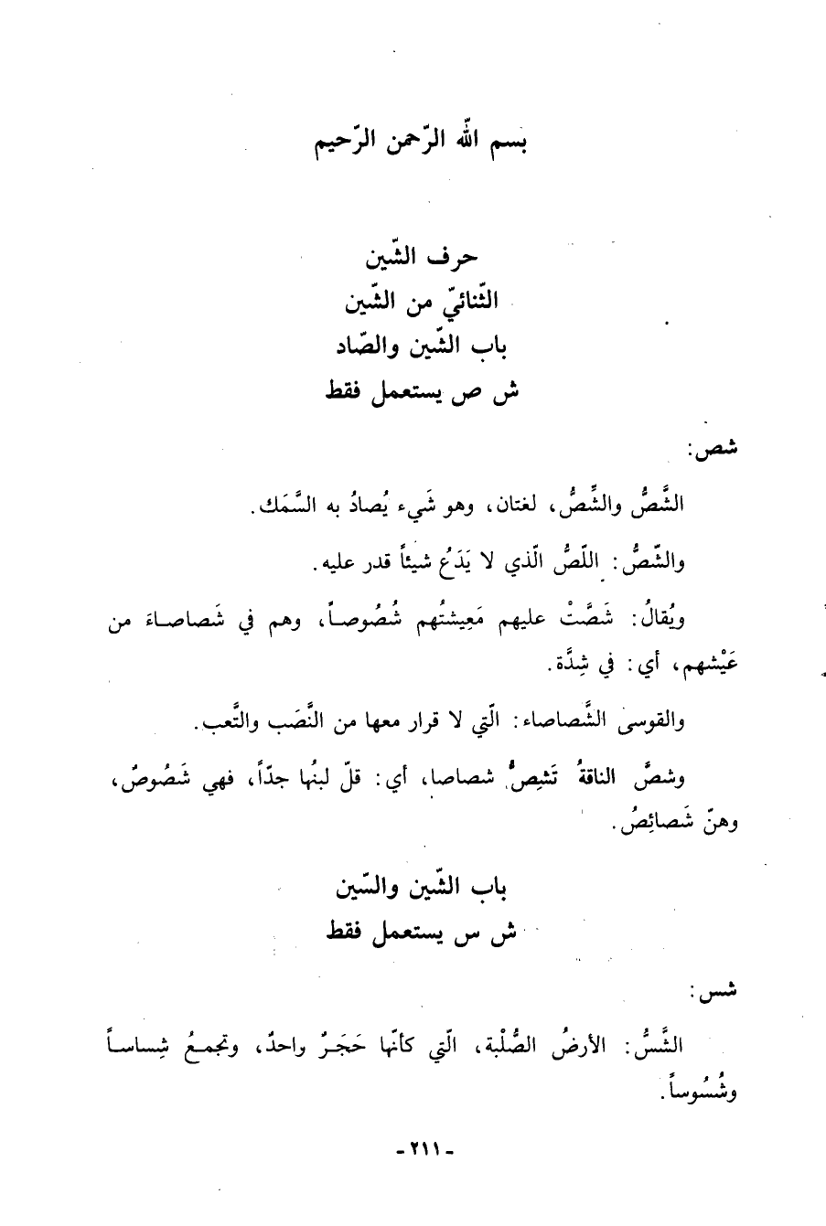 باب الشين والصاد ش ص يستعمل فقط