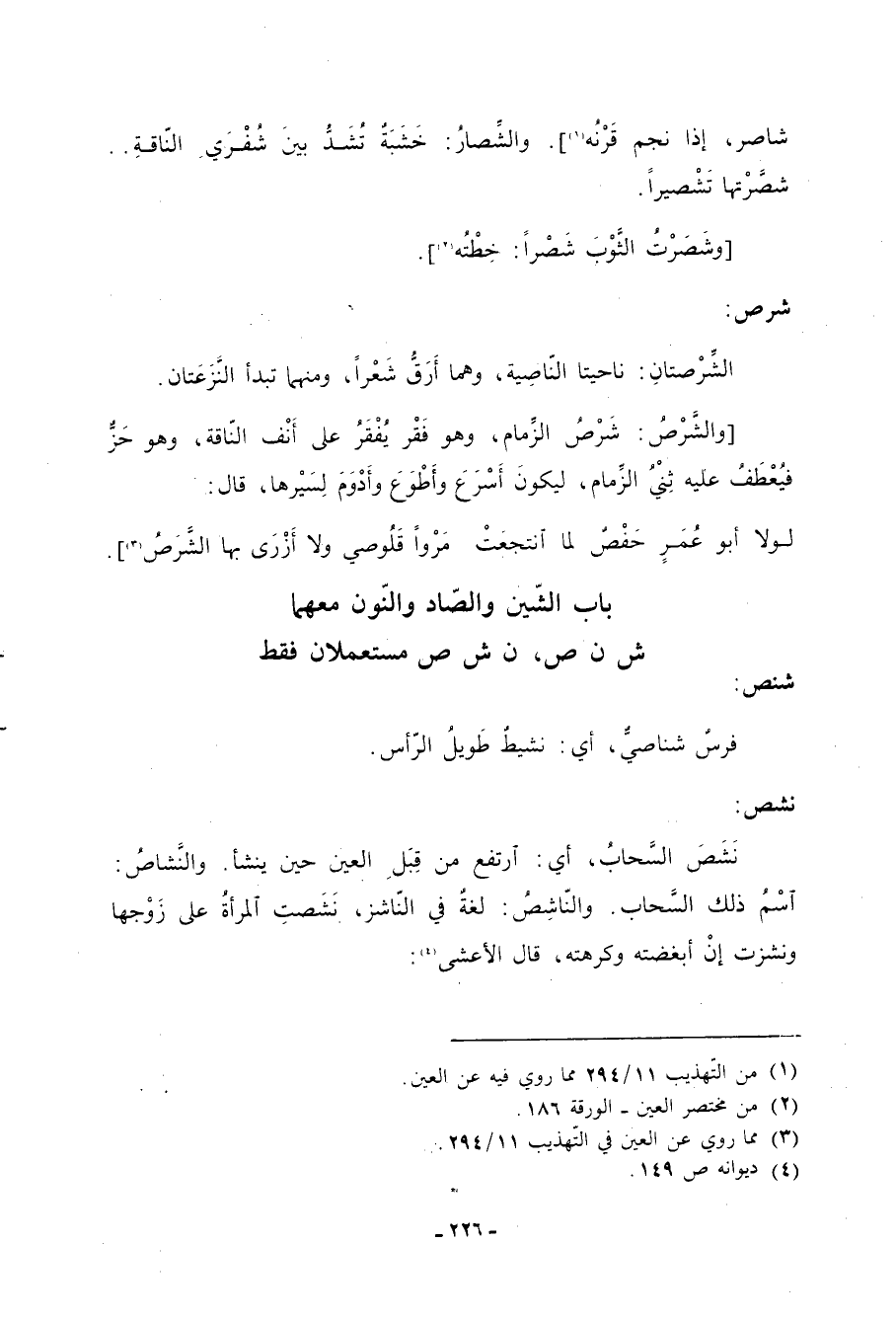 باب الشين والصاد والنون معهما ش ن ص، ن ش ص مستعملان فقط