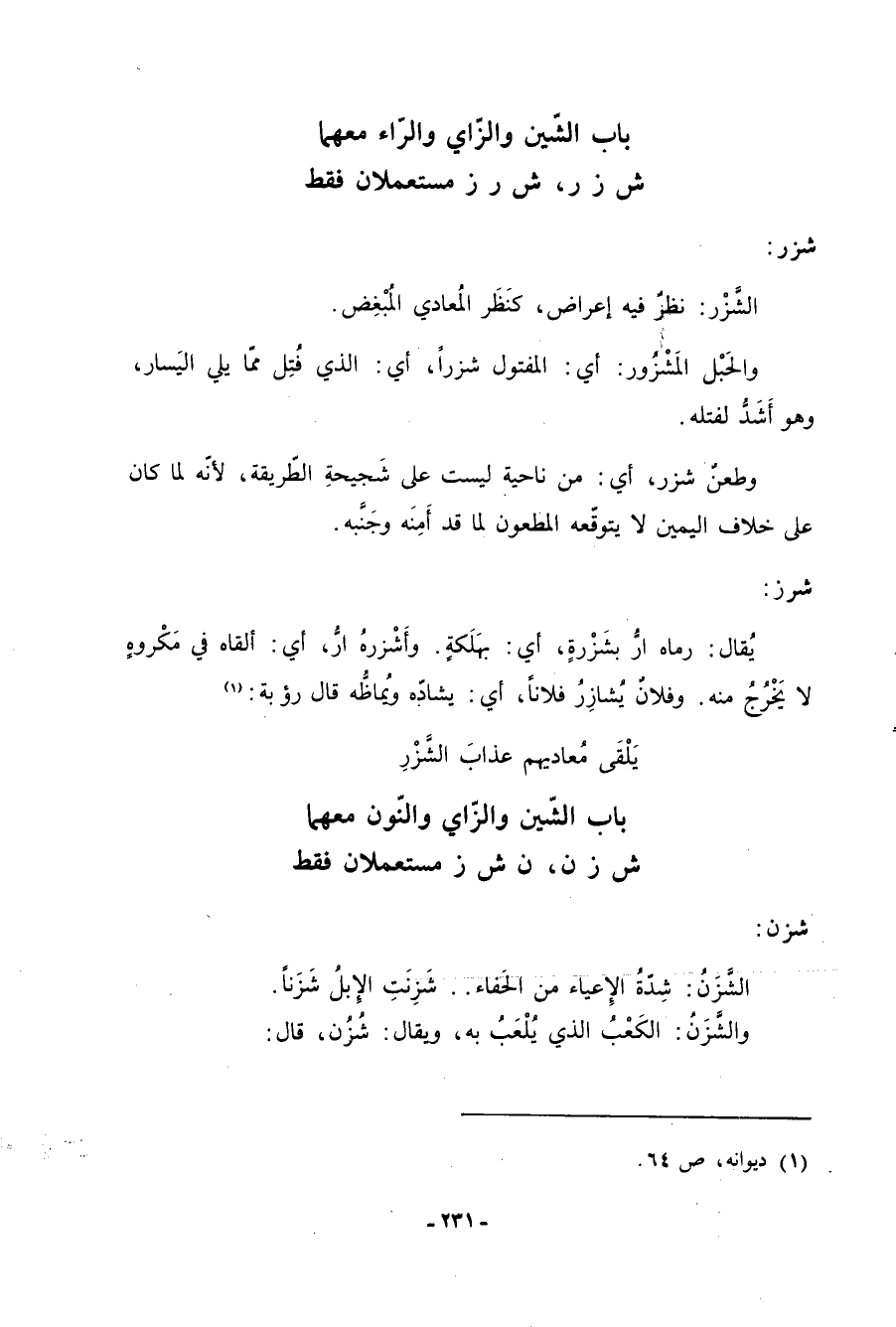 باب الشين والزاي والراء معهما ش ز ر، ش ر ز مستعملان فقط