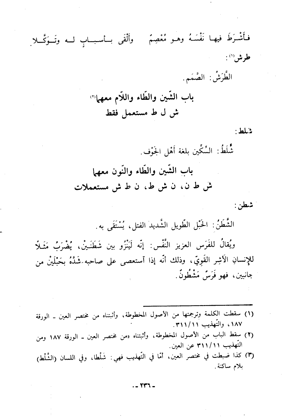باب الشين والطّاء والنون معهما ش ط ن، ن ش ط، ن ط ش مستعملات