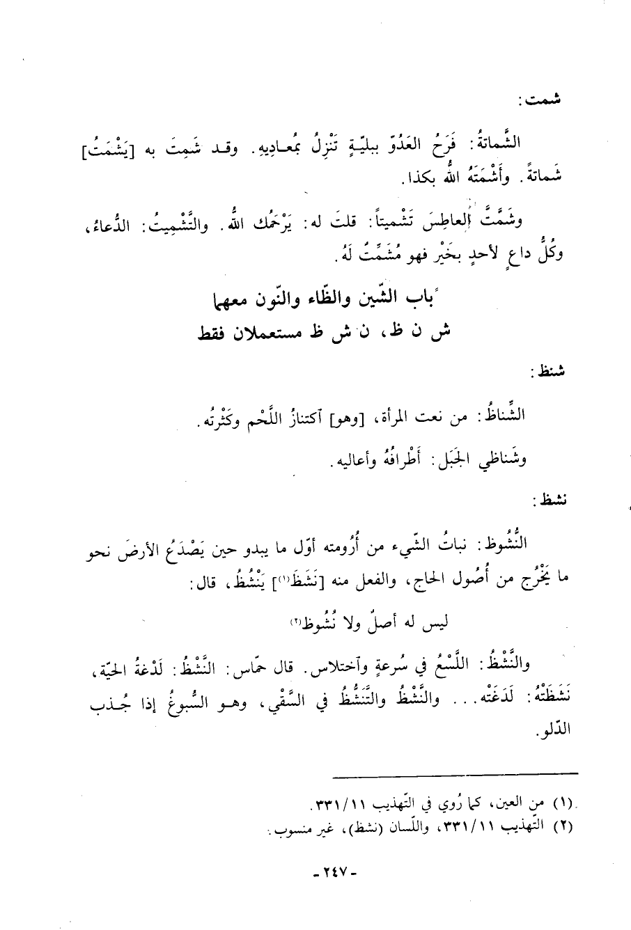 باب الشين والظاء والنون معهما ش ن ظ، ن ش ظ مستعملان فقط