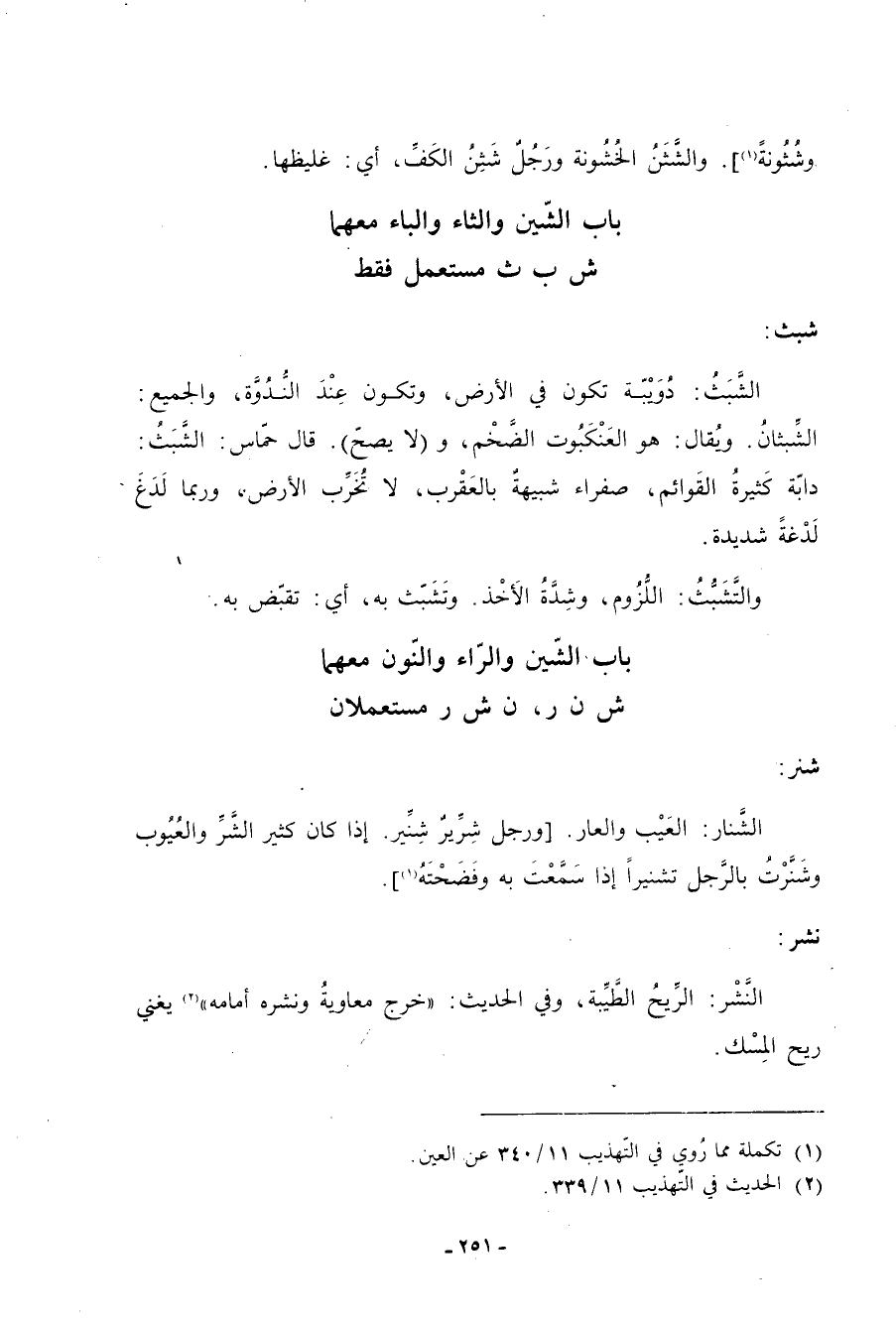باب الشين والراء والنون معهما ش ن ر، ن ش ر مستعملان